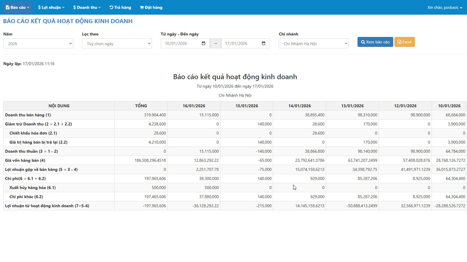So sánh linh hoạt theo thời gian – chi nhánh – cửa hàng.