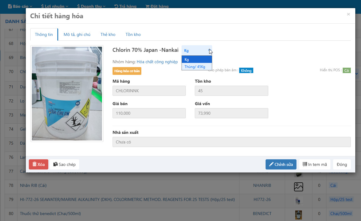Hệ thống hỗ trợ nhiều đơn vị tính cho cùng một sản phẩm, phù hợp thực tế kinh doanh tại Việt Nam: